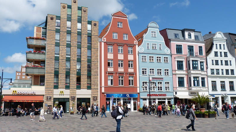 I många år var Rostock Östtysklands största hamn och viktigaste hamnstad. Den historiska hansestaden vid floden Warnow har en vacker stadskärna med gotiska gavelhus och flera medeltida kyrkor. Rostock har mycket att erbjuda och vi bor mitt i centrum strax intill den livliga gågatan Kröpeliner Strasse och har nära till shopping, restauranger och affärer.